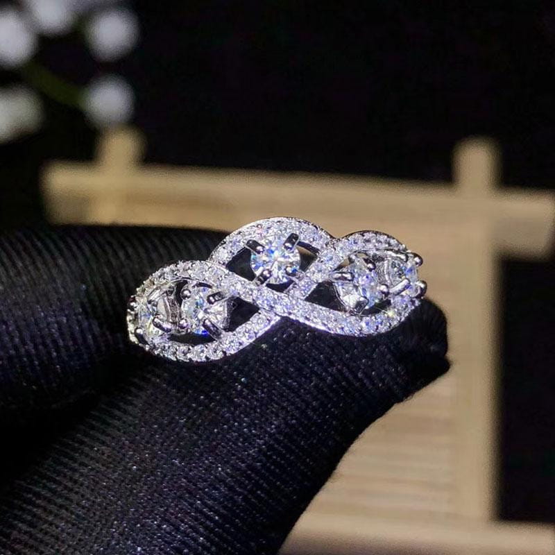 A five stone. unique moissanite anniversary ring/ wedding band for a one of a kind person. This style is a custom style that can't be found elsewhere. Made with 5 high quality .2 carat moissanite stones that shimmer in the light. The moissanite ring itself is made with gold plated 925 sterling silver.