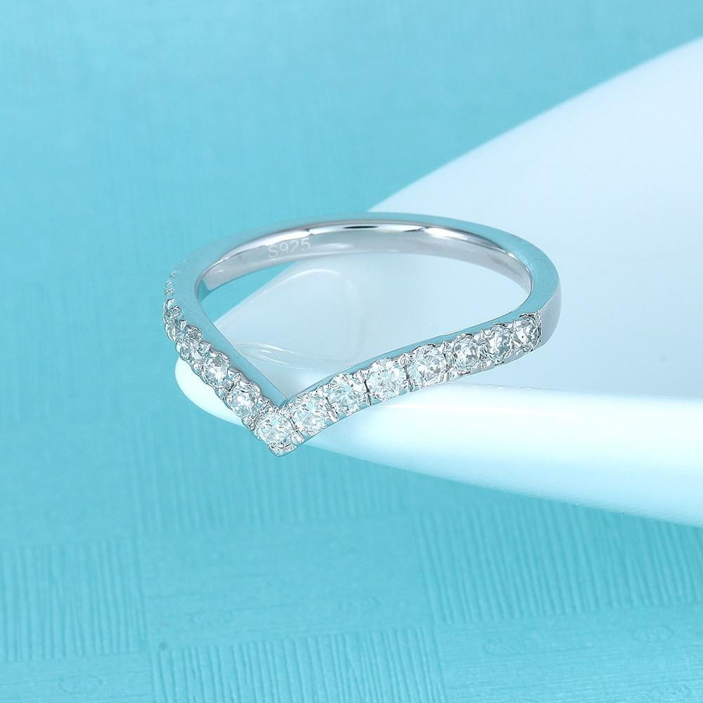 10k White Gold or Platinum Plated Silver 15 Stone Moissanite Anniversary Ring 0.53ctw