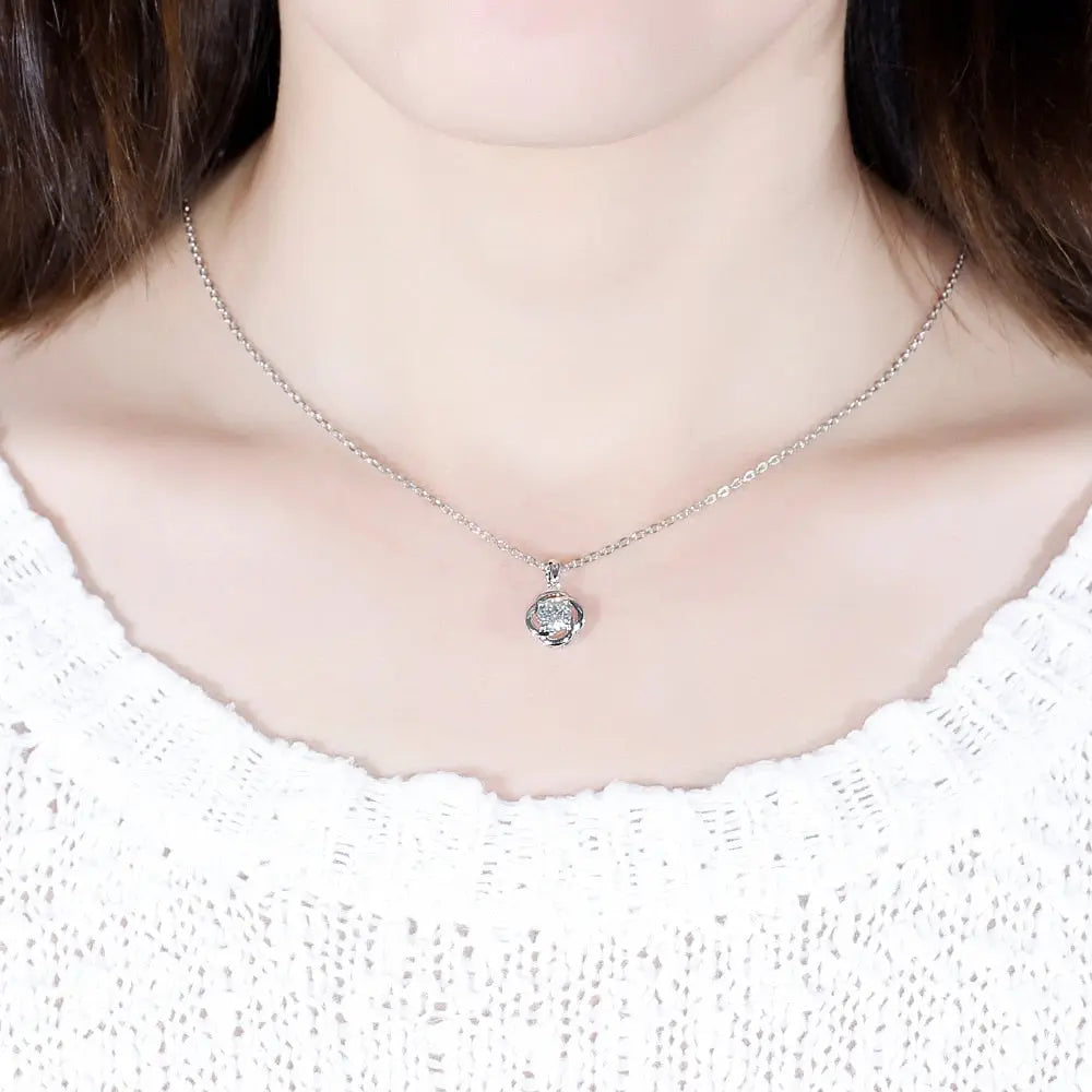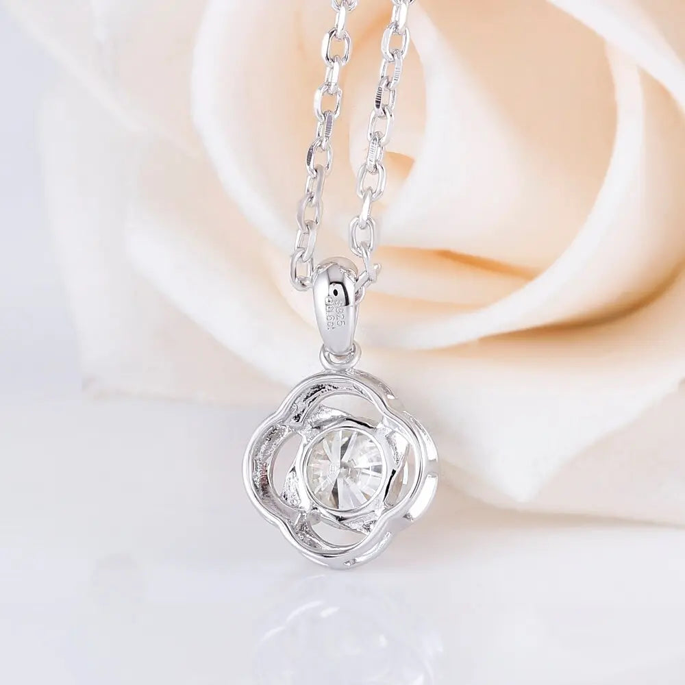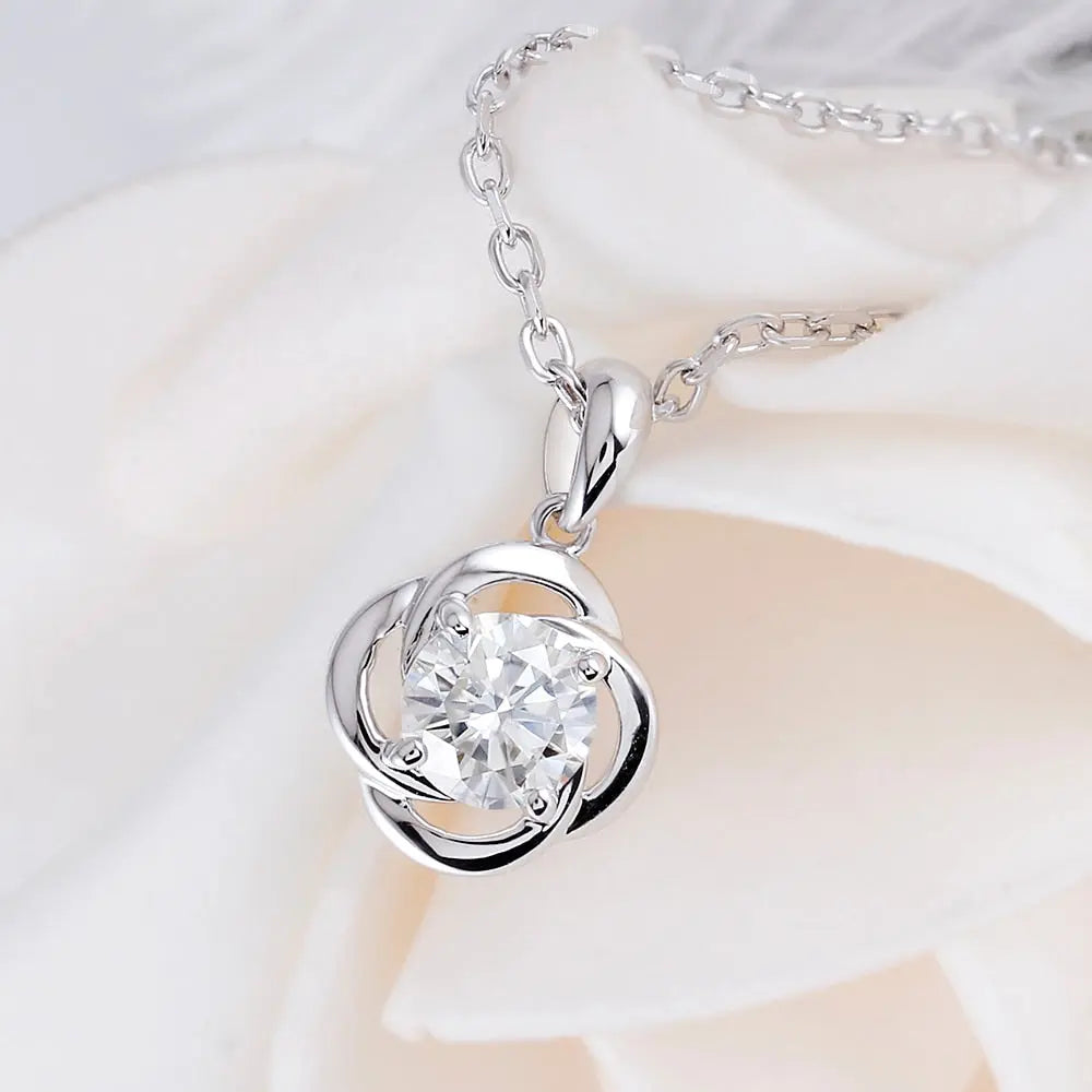Each of our Moissanite Jewelry Necklaces is crafted with platinum-plated silver. offering the luxurious appeal of platinum at a fraction of the price. This setting is not only durable but complements the dazzling Moissanite stone. ensuring it stands out beautifully. The classic round cut of the Moissanite stone. set in a secure 4-prong setting. gives the piece a timeless quality. making it suitable for both everyday wear and special occasions. Whether you're attending a formal event or simply want to add a touch of elegance to your daily style. this necklace is designed to be versatile and stunning in any setting.