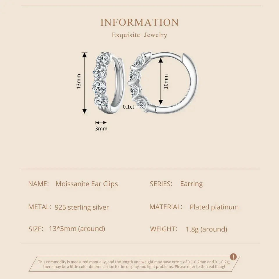 The hoop earring design is a versatile choice that seamlessly complements casual outfits. business attire. or formal evening wear. The compact size and secure closure make these 925 silver moissanite hoop earrings comfortable and easy to wear all day.