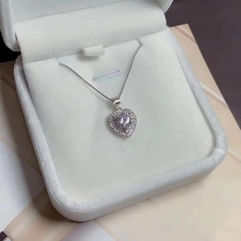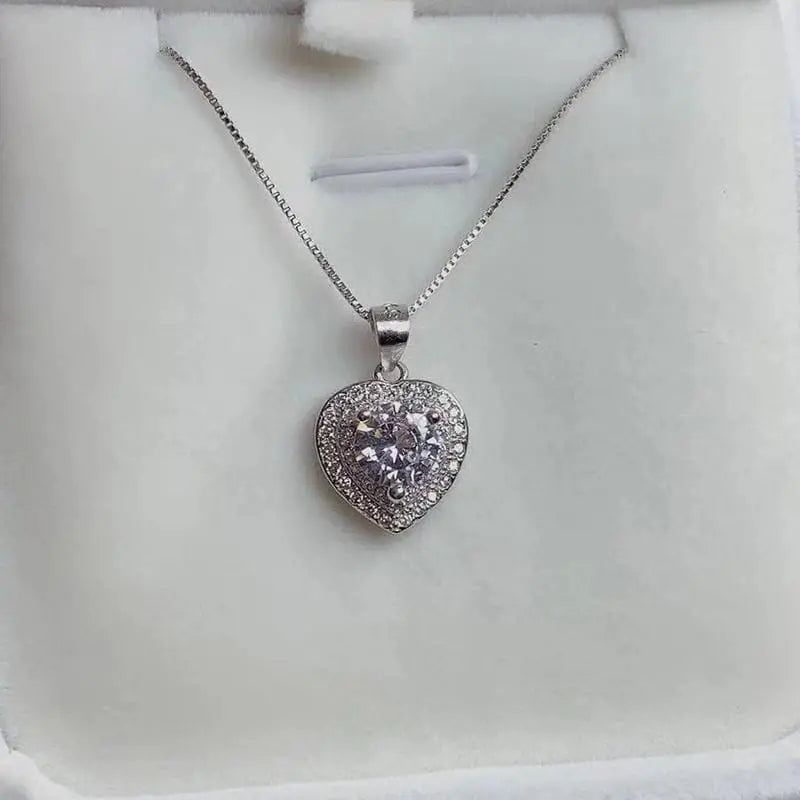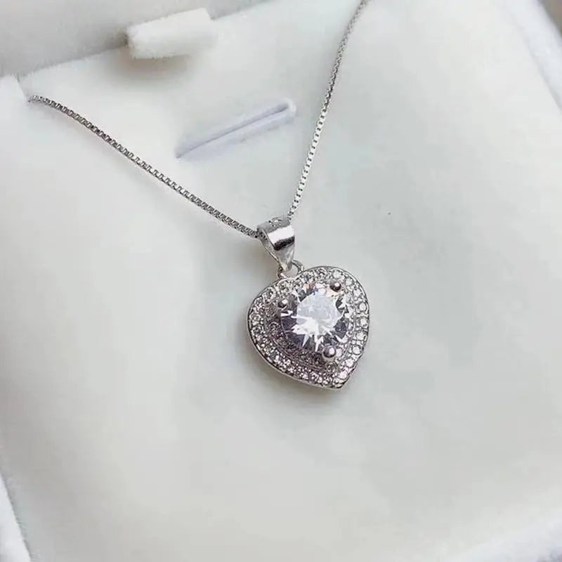 Crafted from platinum-plated 925 silver. the necklace combines luxury with durability. The platinum plating offers a sleek. polished finish. ensuring the necklace remains tarnish-free and retains its stunning appearance for years to come. The elegant heart-shaped halo design adds a romantic touch. making it an ideal gift for anniversaries. Valentine's Day. or just because.