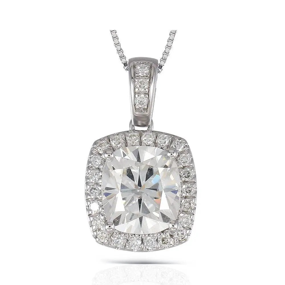Platinum Plated Silver Halo Moissanite Pretty Woman Necklace 2.18ct Total