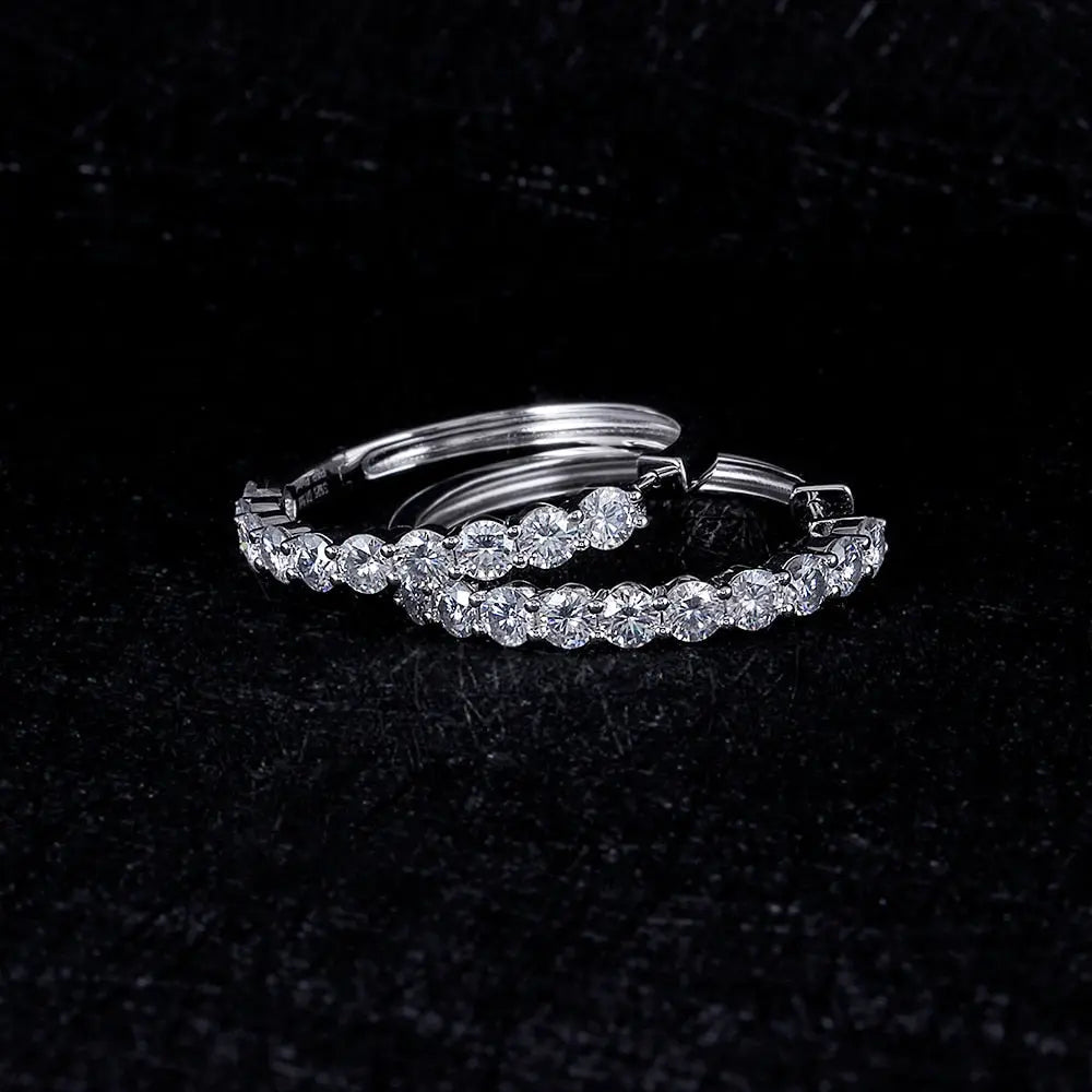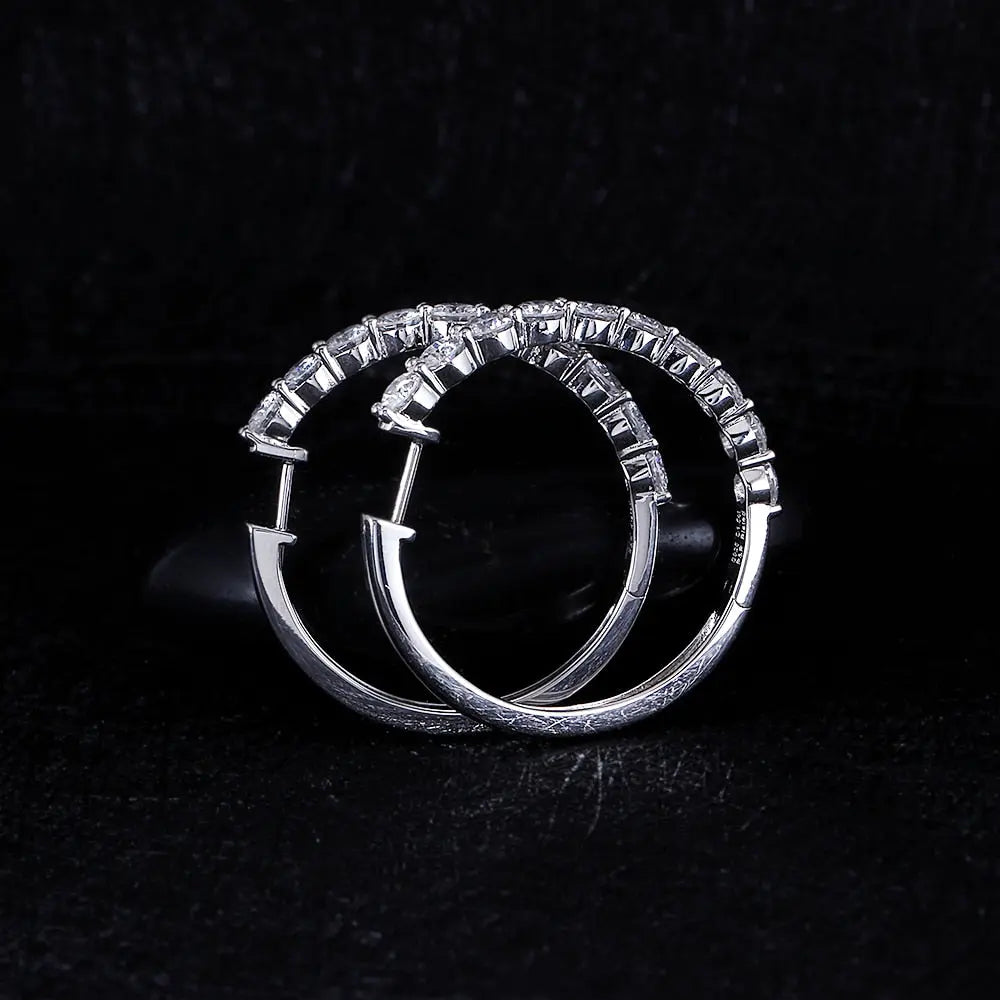 Platinum Plated Silver Hoop Earrings Moissanite 3.4ctw
