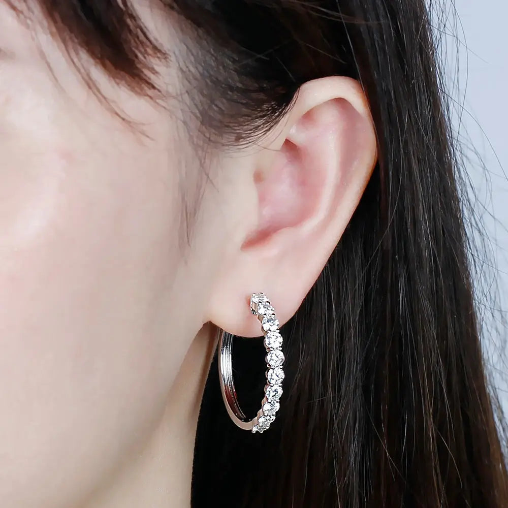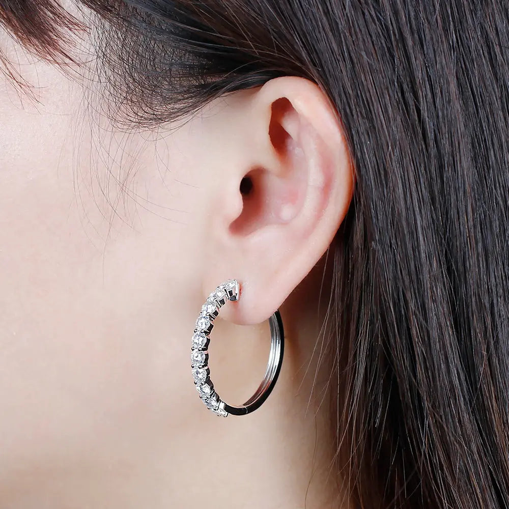 Whether you're treating yourself or searching for the perfect gift. our silver hoop earrings offer unbeatable quality and value. The combination of platinum-plated silver and high-quality Moissanite stones ensures that these earrings will remain a cherished accessory for years to come.