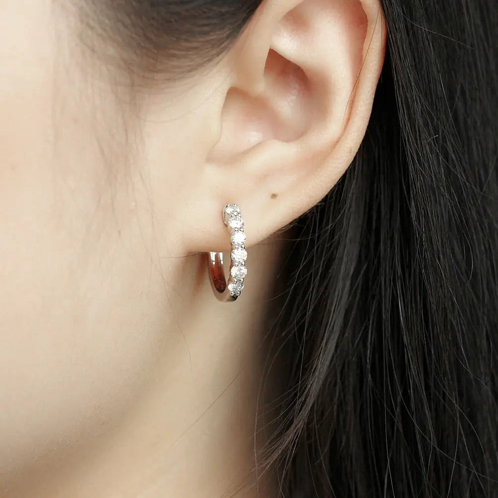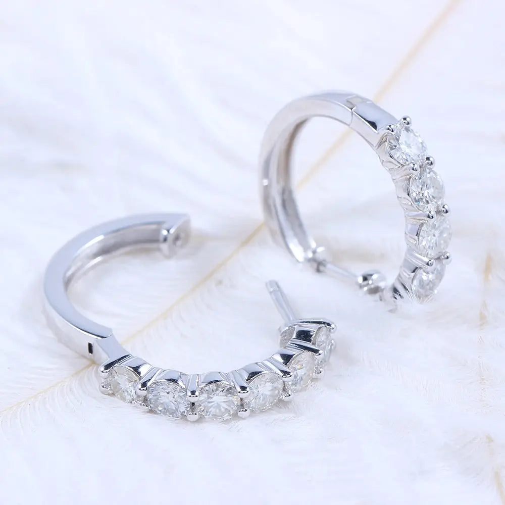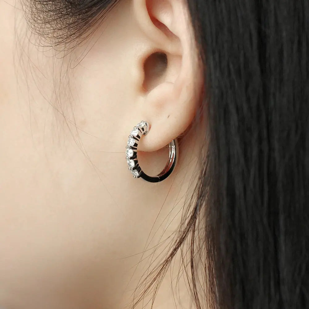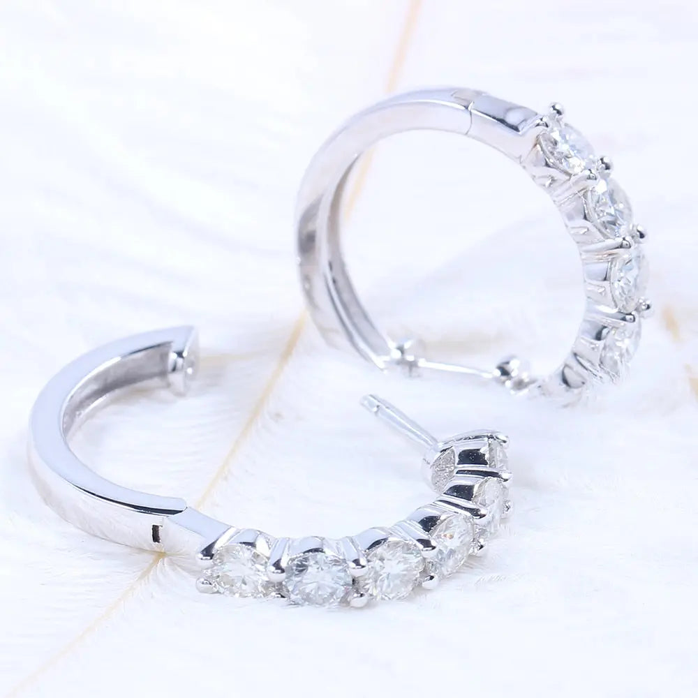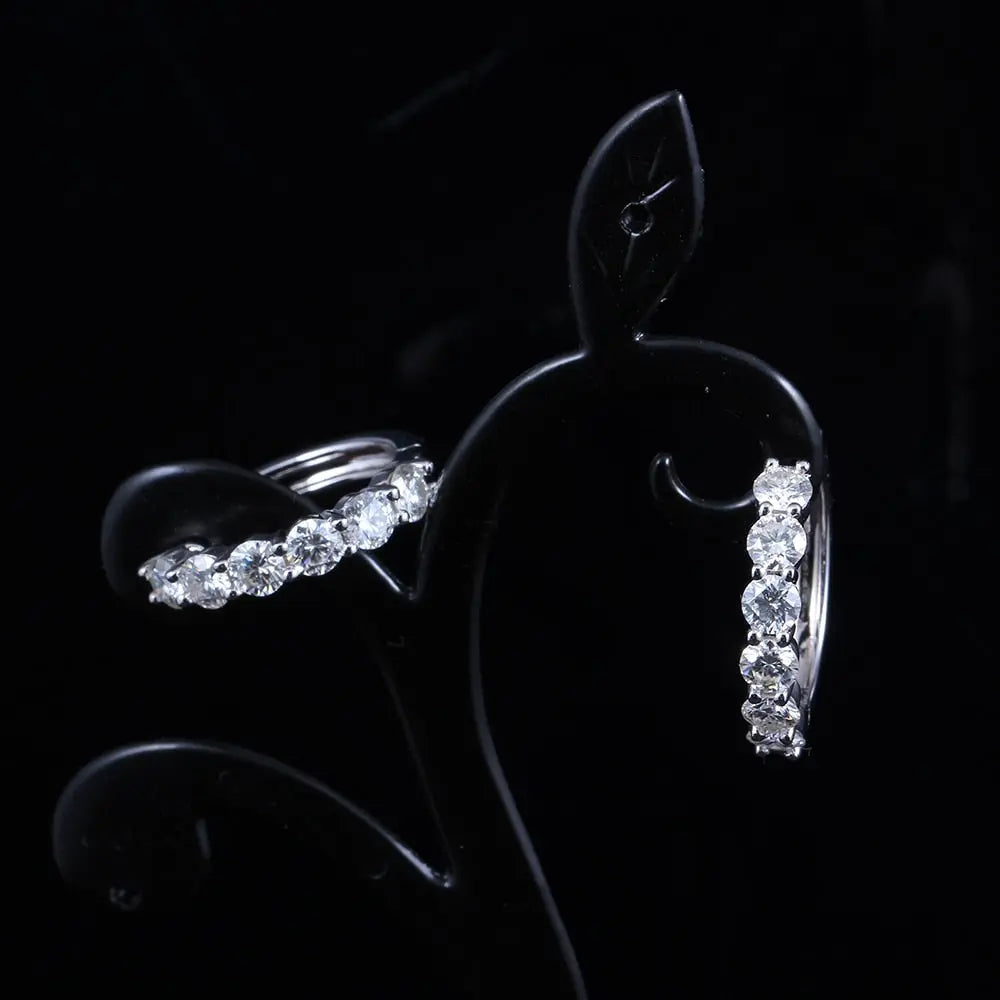 The hoop style of these platinum Moissanite earrings makes them versatile enough to wear with formal or casual attire. They bring a touch of class to any occasion. whether it's a business meeting. a wedding. or a night out. The platinum plating on the silver ensures a lasting shine. making them an ideal choice for those who appreciate both quality and style.
