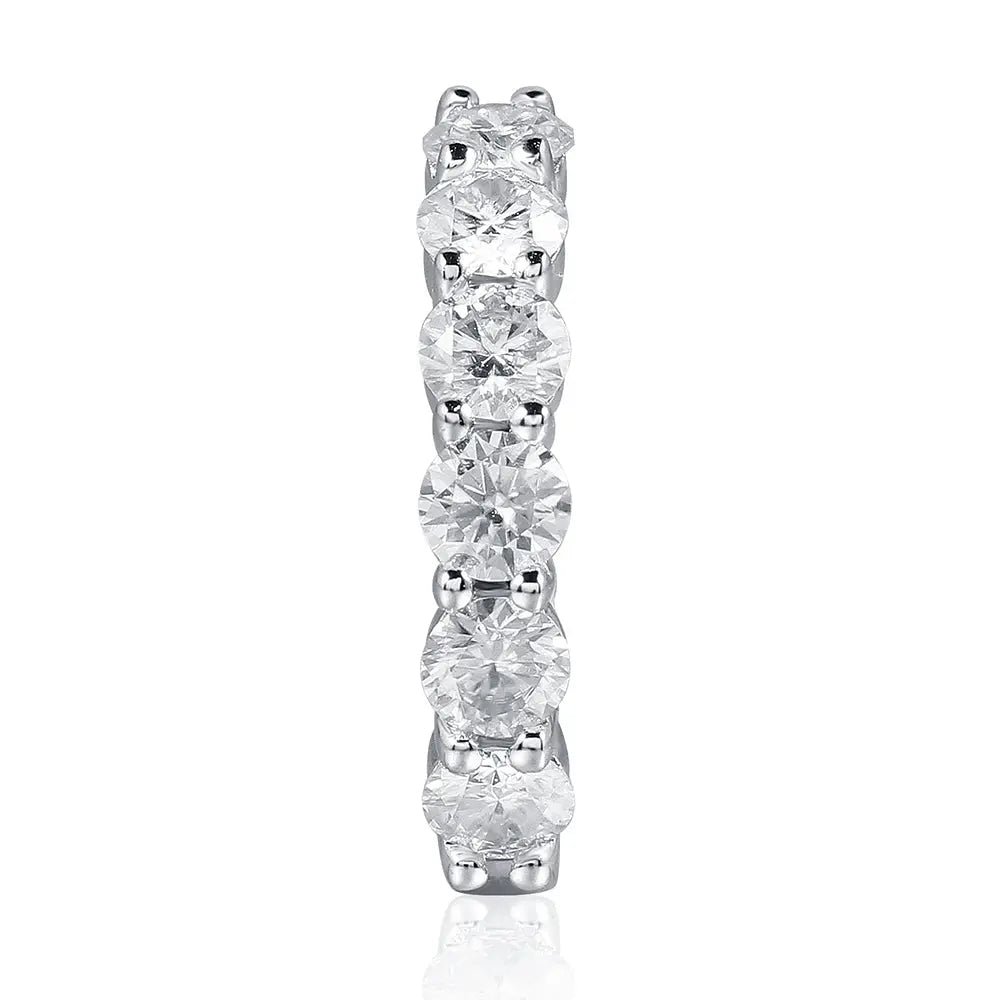 These platinum Moissanite earrings are a luxurious addition to any jewelry collection. They combine the brilliance of Moissanite with the timeless allure of platinum-plated silver. Designed in a classic hoop style. these earrings offer a stunning sparkle thanks to their high-quality stones and elegant craftsmanship. With a total carat weight of 2.4 carats. they are perfect for those who seek elegance and sophistication in their accessories. Plus. they're available at an affordable price. making them an accessible luxury.