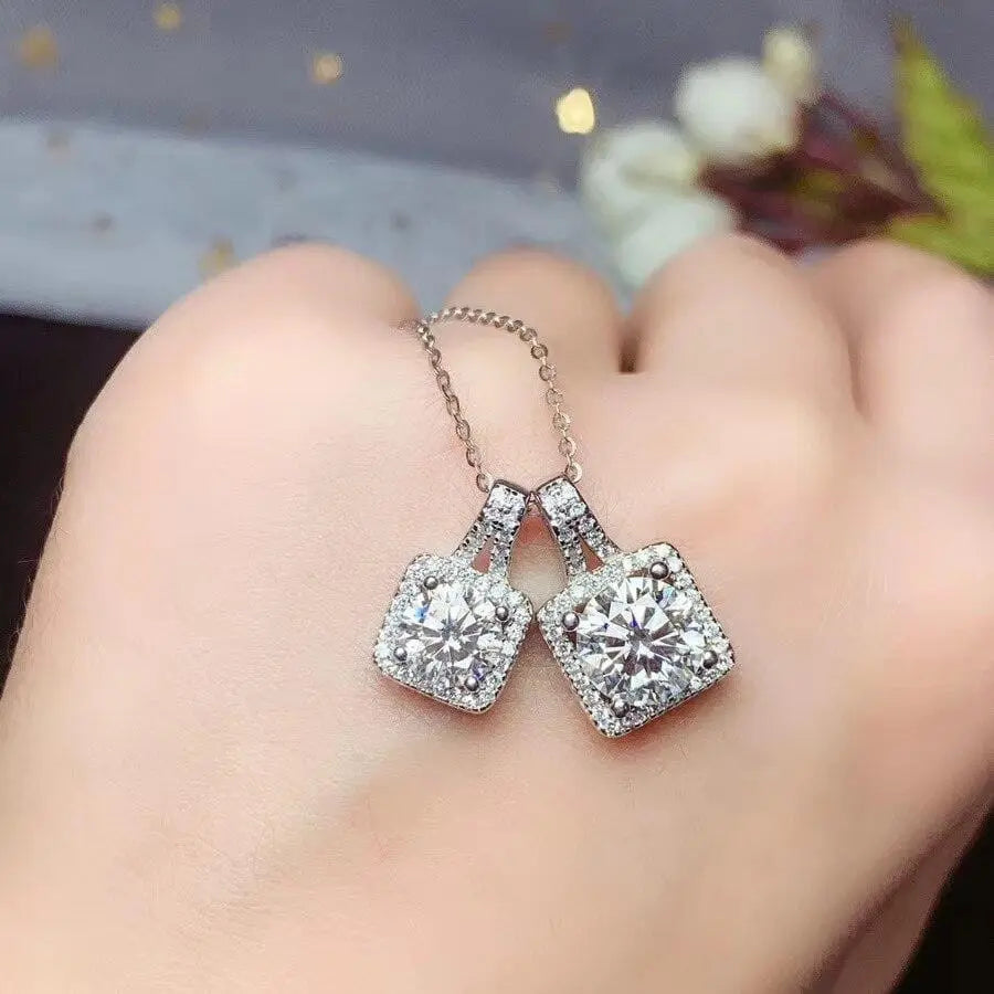 Platinum Plated Silver Moissanite Halo Cute Necklace for Mom 1ct & 2ct Options
