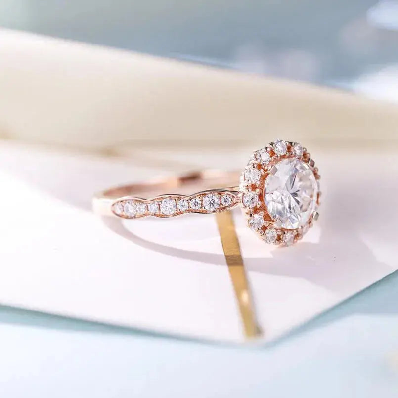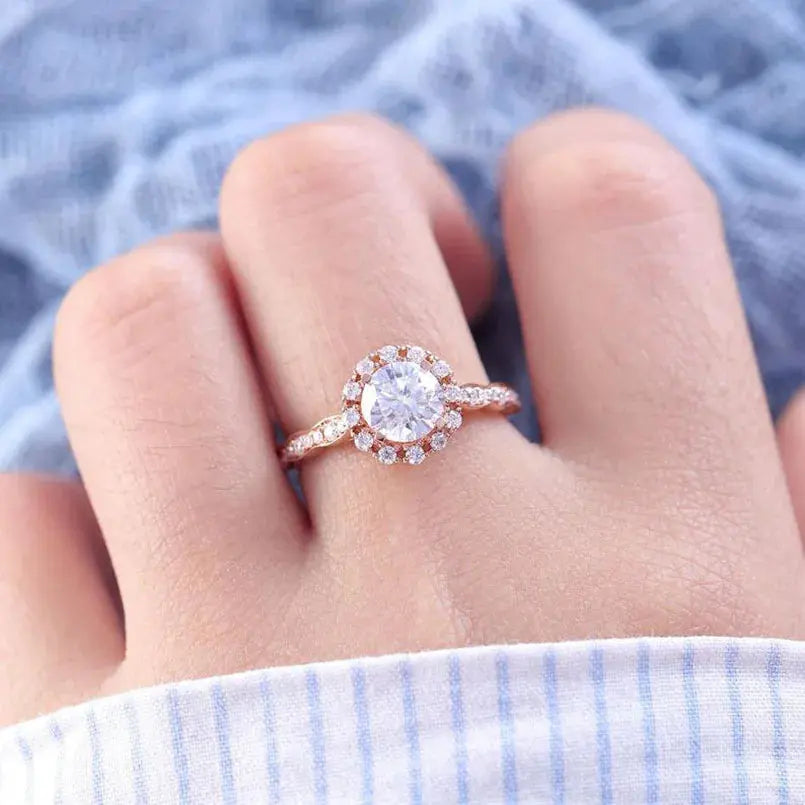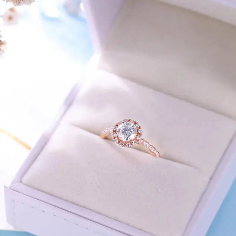 14k Rose Gold Halo Ring | Moissanite Engagement Ring 1ct