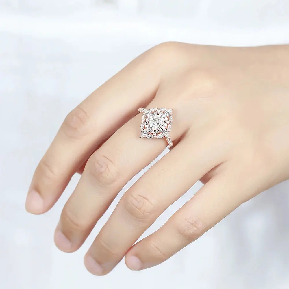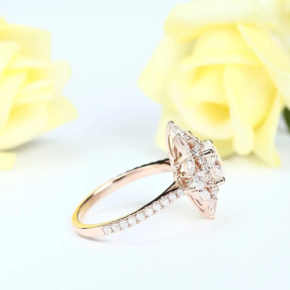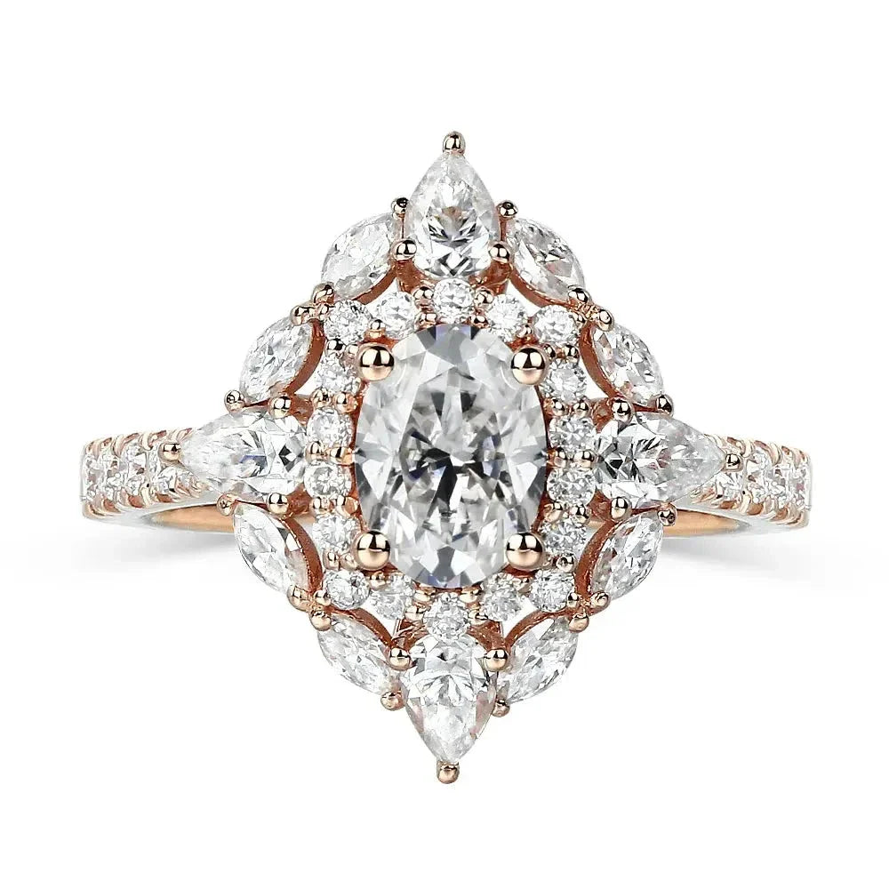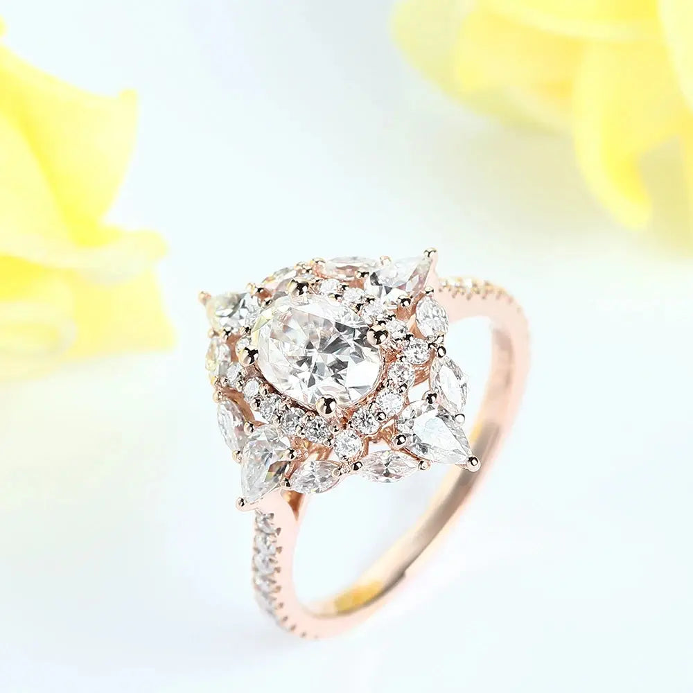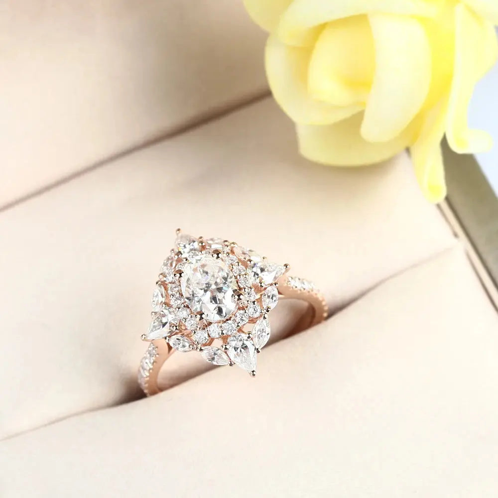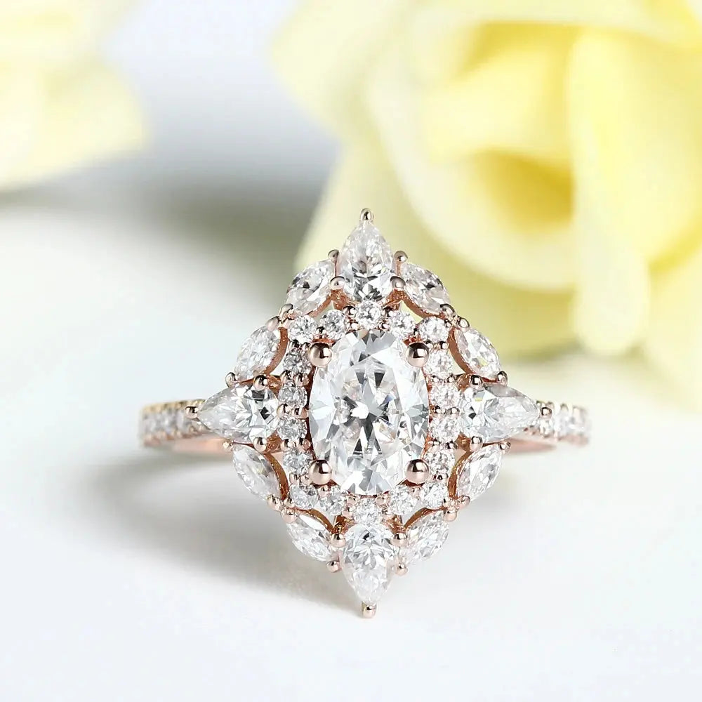 Rose Gold Oval Cut Double Halo Moissanite Engagement Ring 1.25ct