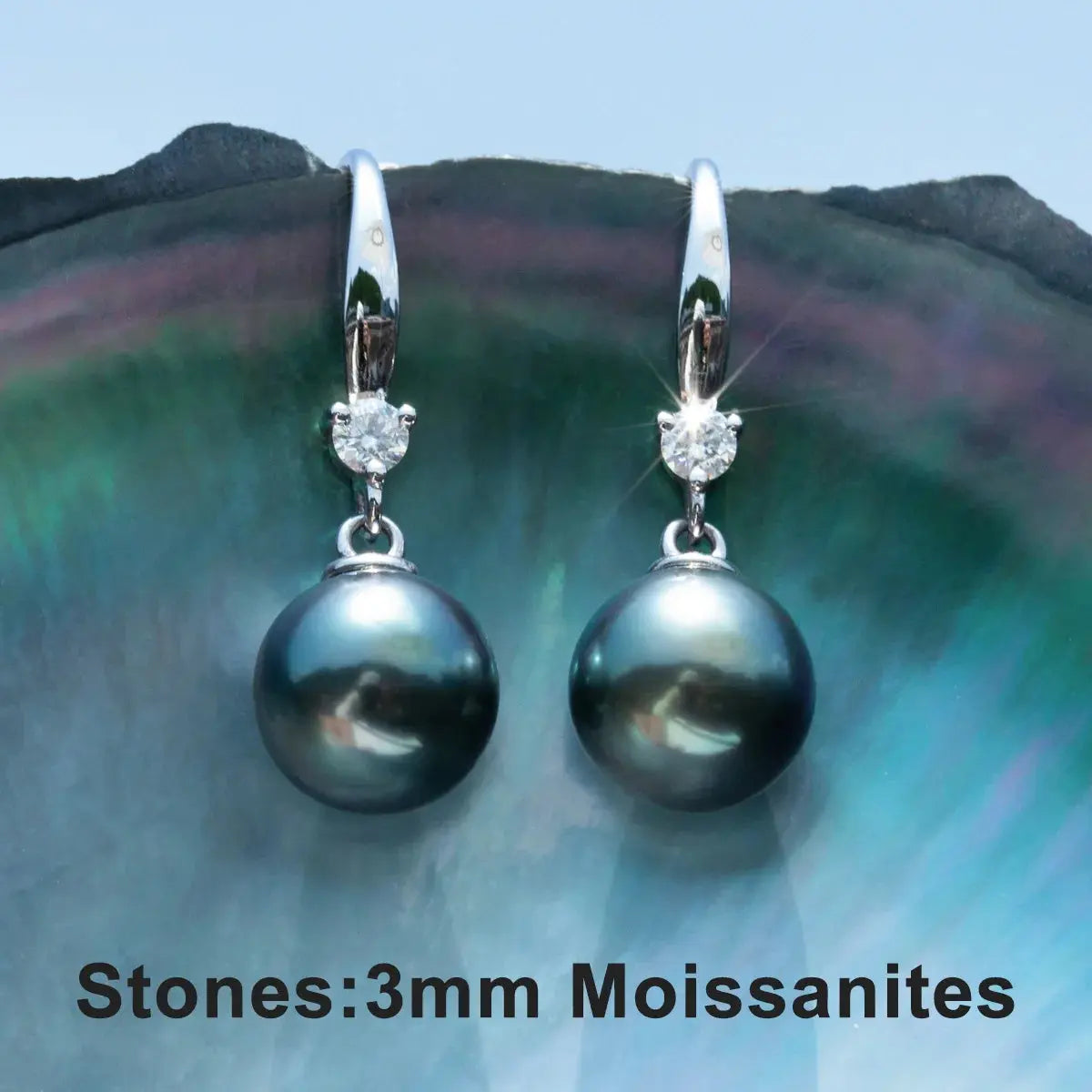 Discover the pinnacle of sophistication with our 12MM Tahitian Pearl Earrings. a perfect blend of timeless charm and modern brilliance. These stunning earrings are designed to showcase the natural beauty of Tahitian black pearls. complemented by the radiant sparkle of moissanite accent stones.