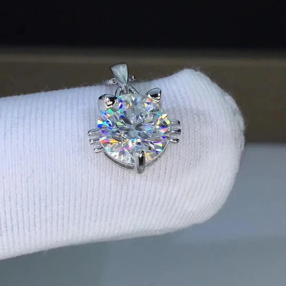 Silver Cat Face Moissanite Necklace With a Pendant 1ct & 2ct Options