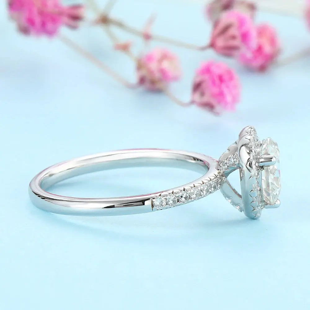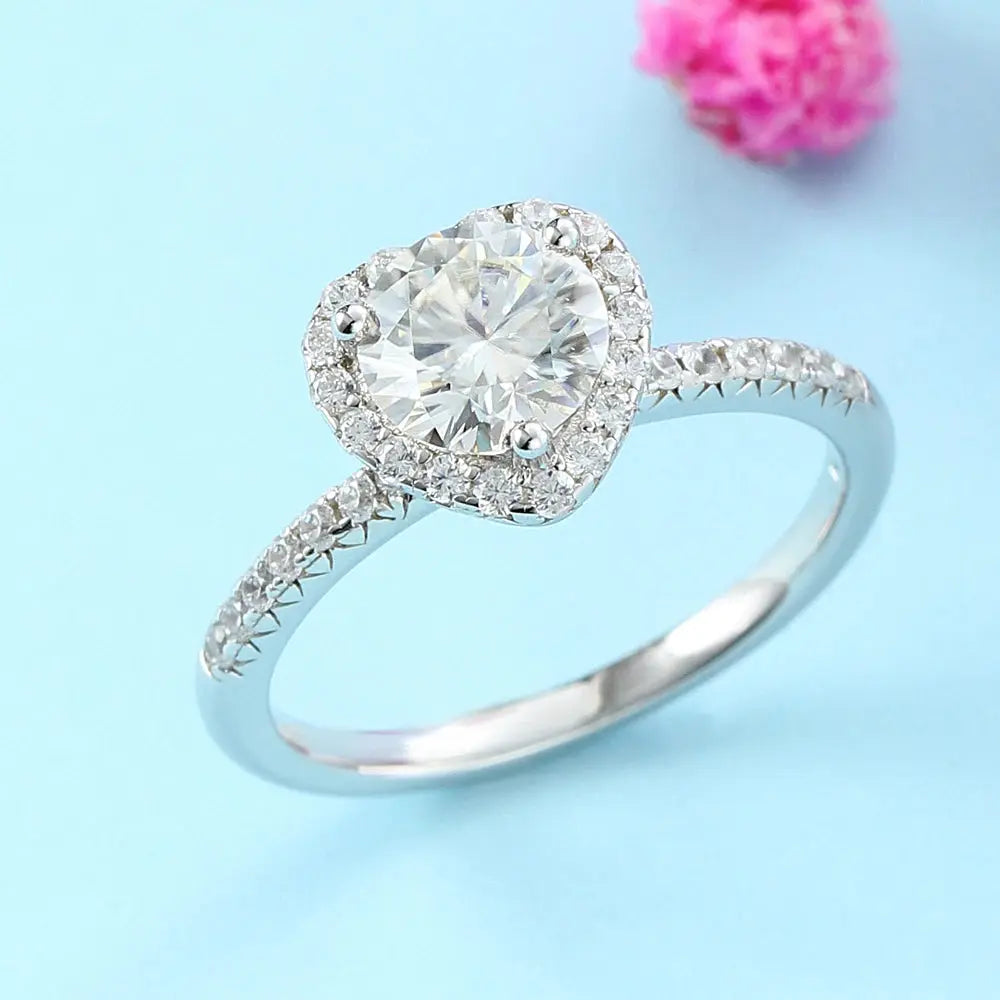 Moissanite Stone: The Center stone is 1ct (6.5mm) Moissanite Round Cut. Side Stones are Moissanite