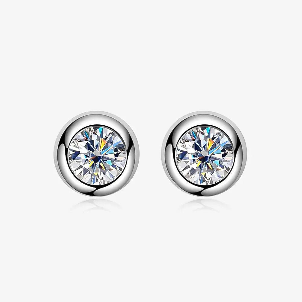 - Stone Size and Carat Weight: Each earring in the set is equipped with a 5mm moissanite stone. weighing 0.5ct each. The total carat weight for the set is 1ctw. offering a perfect balance of sparkle and sophistication. The Bezel Set Stud Earrings are a timeless accessory that can complement any outfit. from casual wear to elegant evening attire.