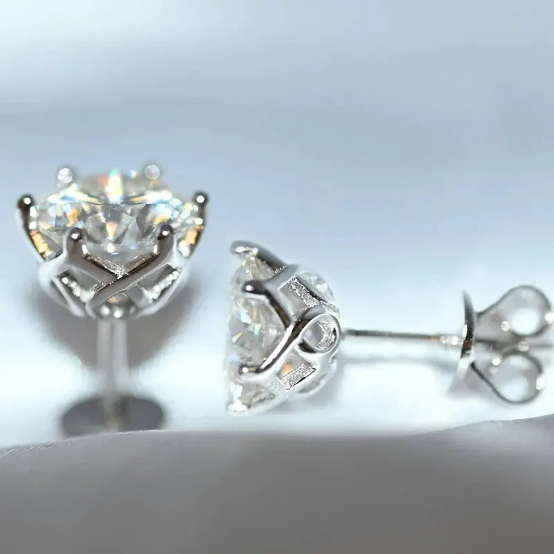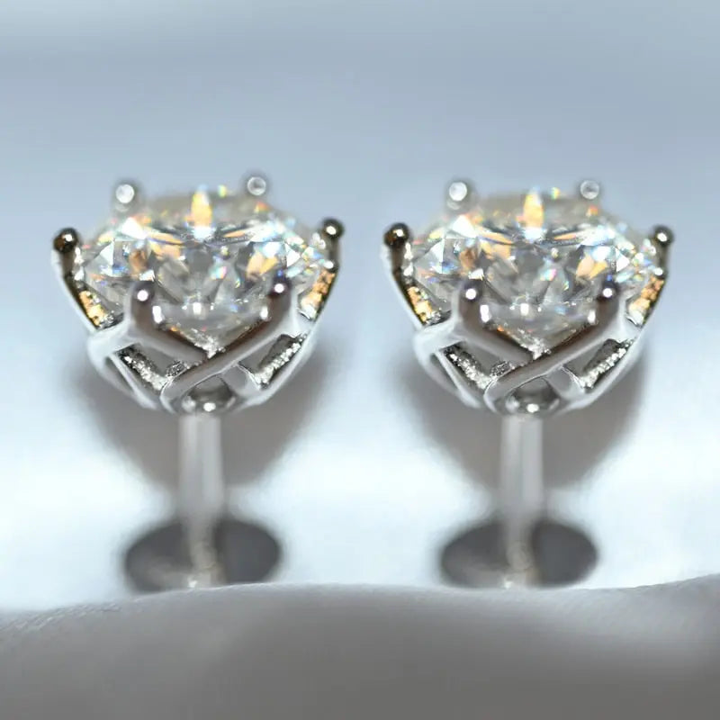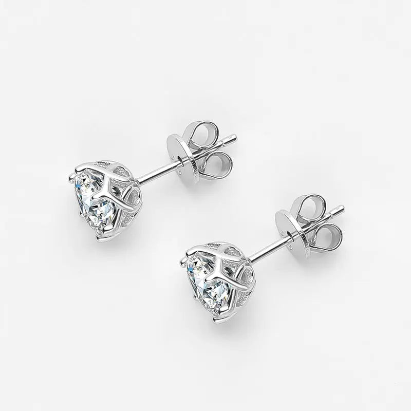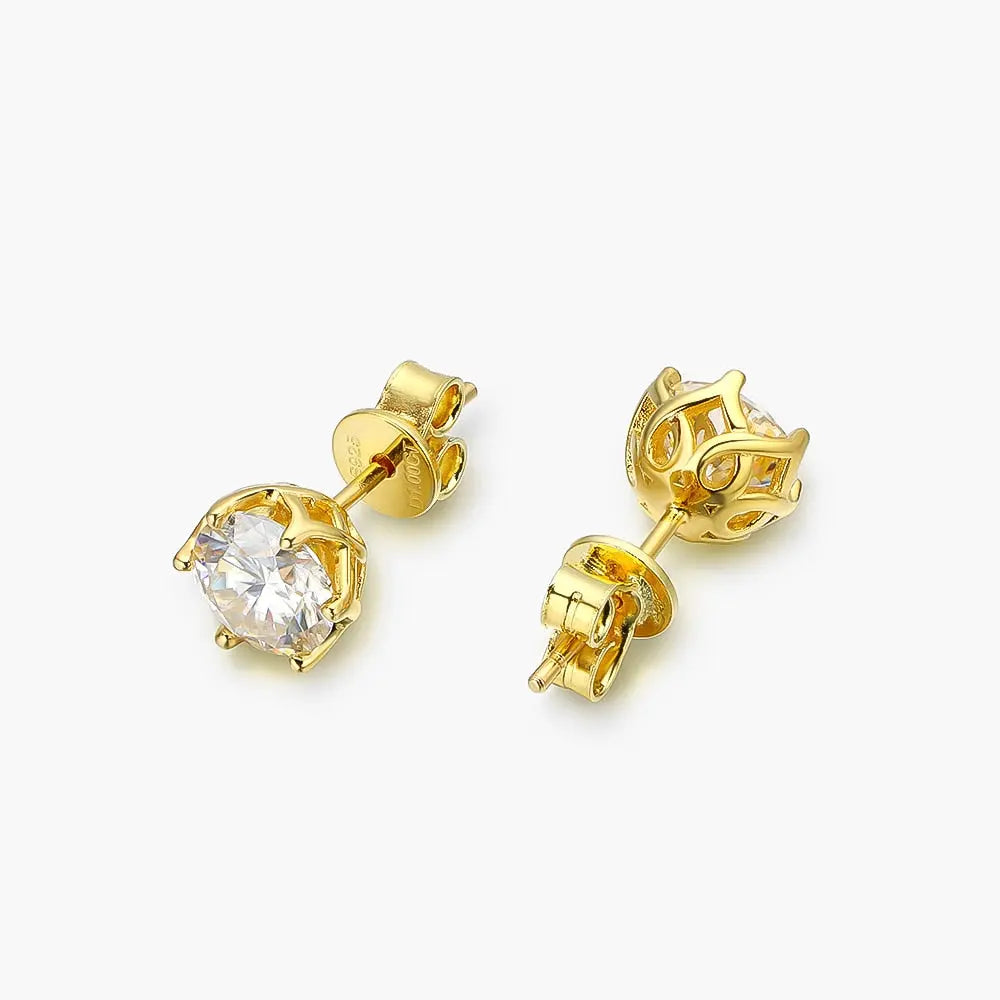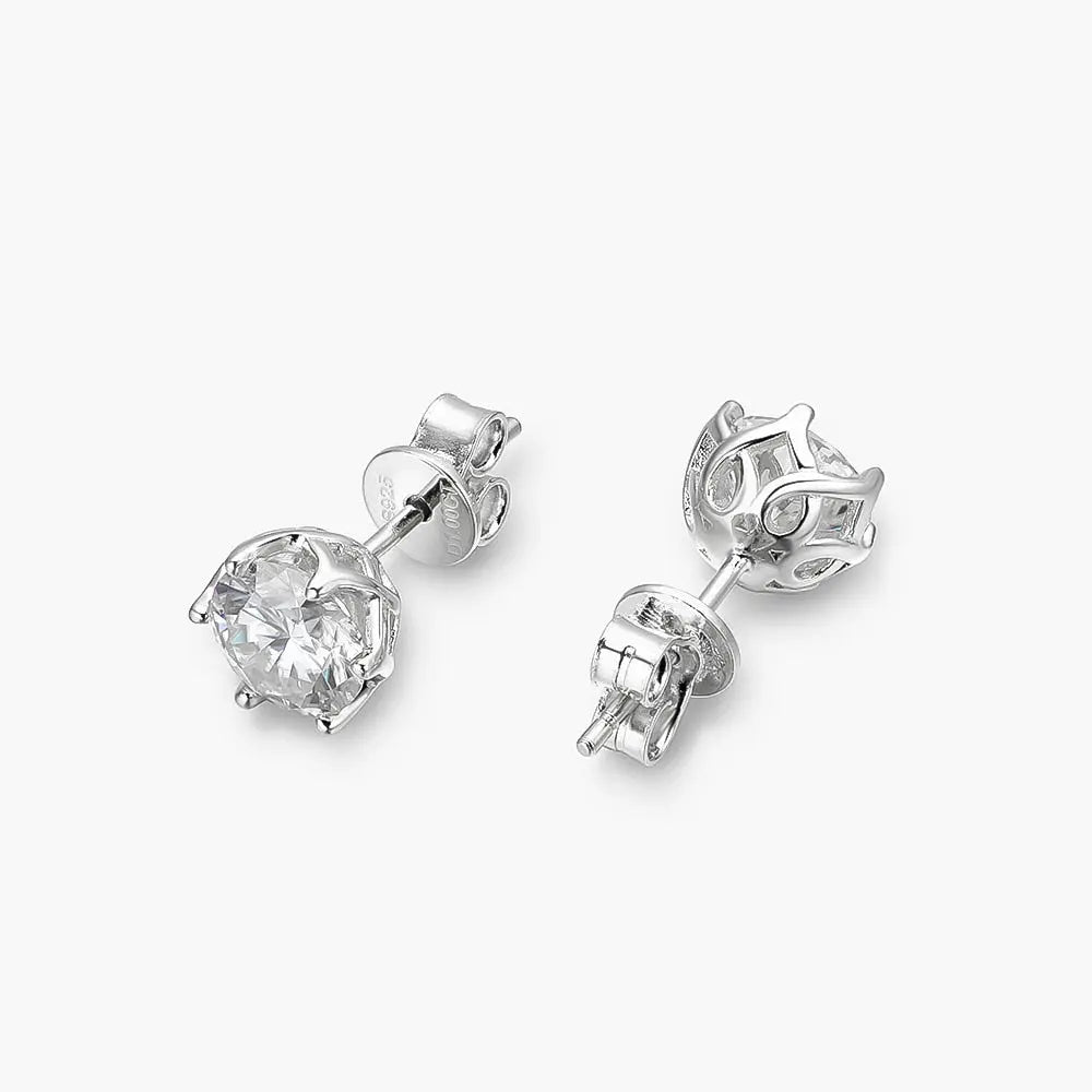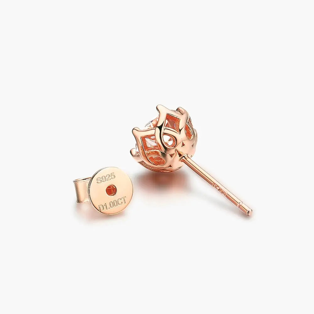 Silver, Rose silver, Yellow silver Moissanite Stud Earrings 1ctw - 2ctw